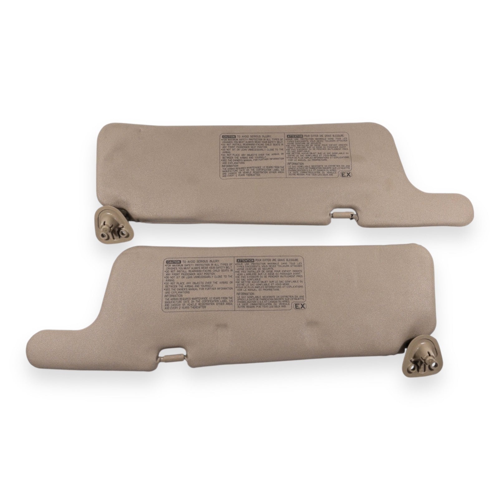 1993-1997 Toyota Corolla Driver & Passenger Side Sun Visor Pair Set Tan Vinyl