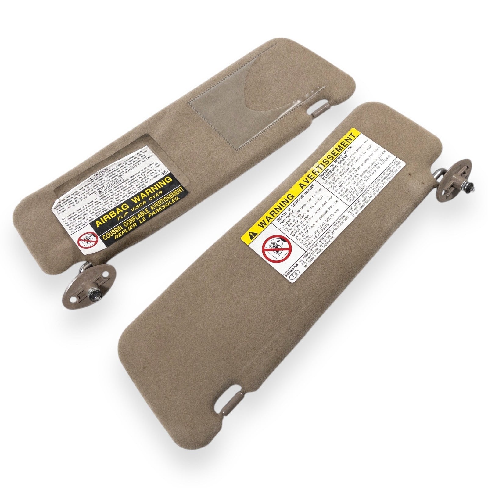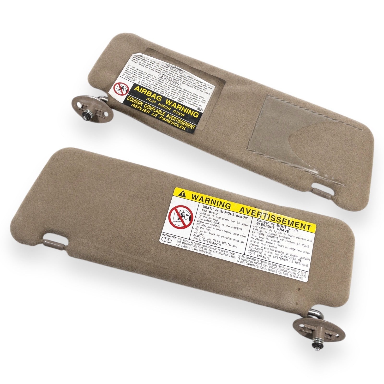 1996-2002 Toyota 4Runner Driver & Passenger Side Sun Visor Set Pair Tan Brown